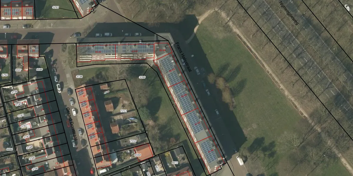 Het perceel waarop Frans Halsstraat 55 staat heeft een oppervlakte van 1600 m². Dit is een zeer groot perceel. De perceeloppervlakte wordt geregistreerd door het Kadaster. Gedetailleerde informatie over de maten van dit perceel kunt u vinden in het rapport Kadastrale kaart met maatvoering van Frans Halsstraat 55.