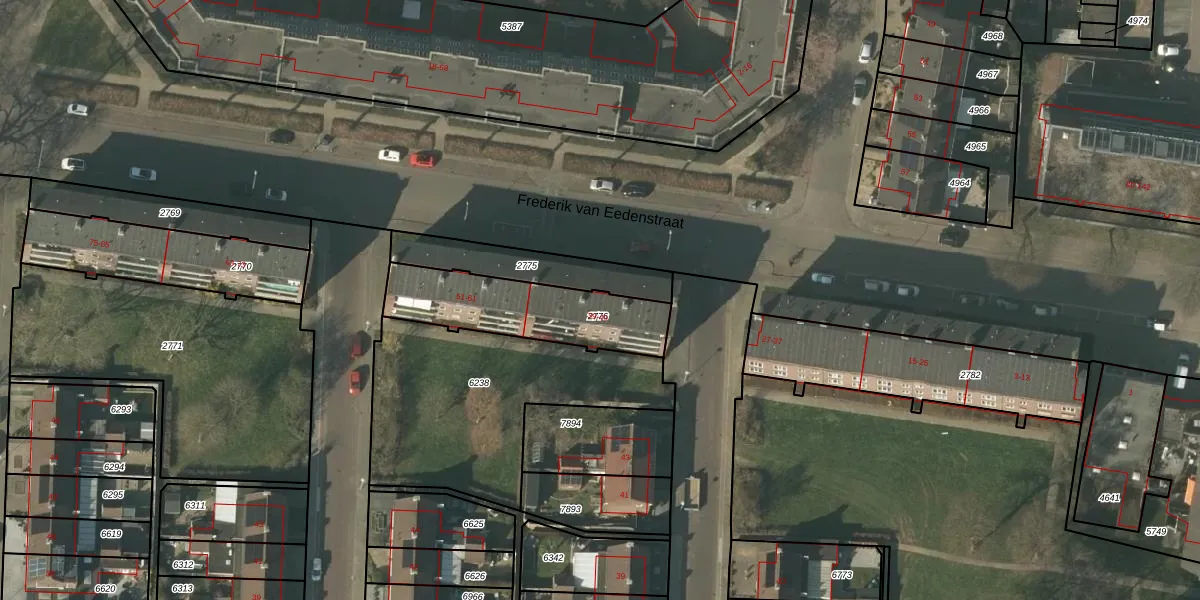Frederik van Eedenstraat 41 is gelegen op kadastraal perceel VLO00M2776. Deze kadastrale aanduiding is uniek en wordt gebruikt door het Kadaster om eigendomsrechten en andere zakelijke rechten vast te leggen. Het perceel maakt onderdeel uit van de kadastrale gemeente Venlo.