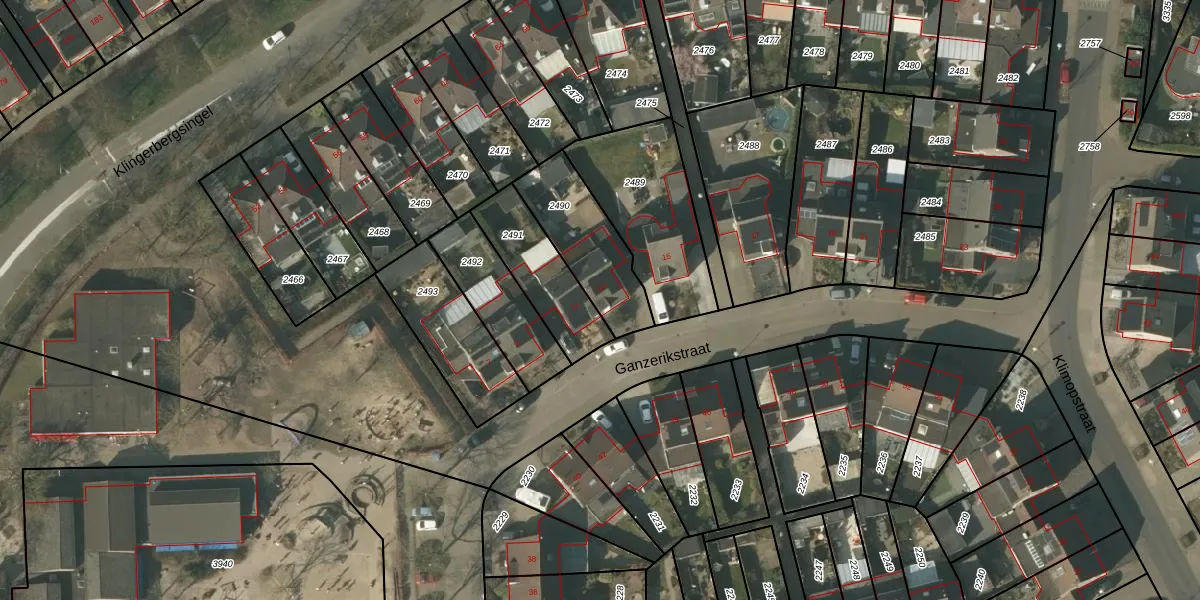 Ganzerikstraat 13 is gelegen op kadastraal perceel VLO00N2490. Deze kadastrale aanduiding is uniek en wordt gebruikt door het Kadaster om eigendomsrechten en andere zakelijke rechten vast te leggen. Het perceel maakt onderdeel uit van de kadastrale gemeente Venlo.