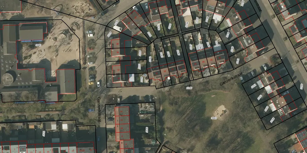 Gebruik de zoekbalk of klik op een perceel voor informatie over de adressen binnen dit perceel.