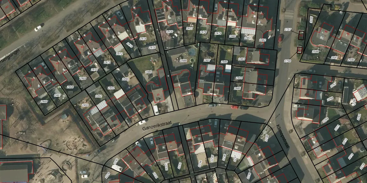 Ganzerikstraat 17 is gelegen op kadastraal perceel VLO00N2488. Deze kadastrale aanduiding is uniek en wordt gebruikt door het Kadaster om eigendomsrechten en andere zakelijke rechten vast te leggen. Het perceel maakt onderdeel uit van de kadastrale gemeente Venlo.
