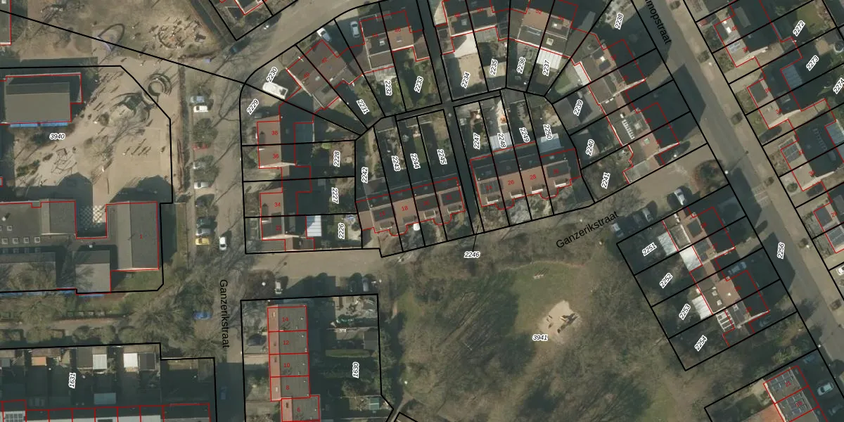 Ganzerikstraat 20 is gelegen op kadastraal perceel VLO00N2244. Deze kadastrale aanduiding is uniek en wordt gebruikt door het Kadaster om eigendomsrechten en andere zakelijke rechten vast te leggen. Het perceel maakt onderdeel uit van de kadastrale gemeente Venlo.