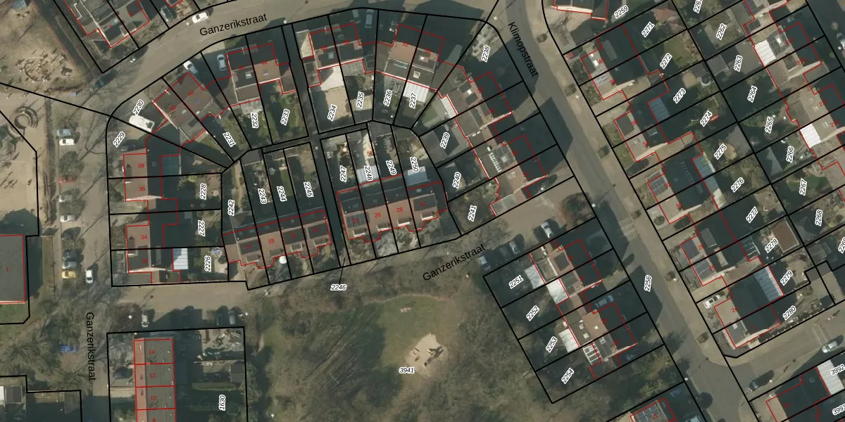 Ganzerikstraat 30 is gelegen op kadastraal perceel VLO00N2250. Deze kadastrale aanduiding is uniek en wordt gebruikt door het Kadaster om eigendomsrechten en andere zakelijke rechten vast te leggen. Het perceel maakt onderdeel uit van de kadastrale gemeente Venlo.