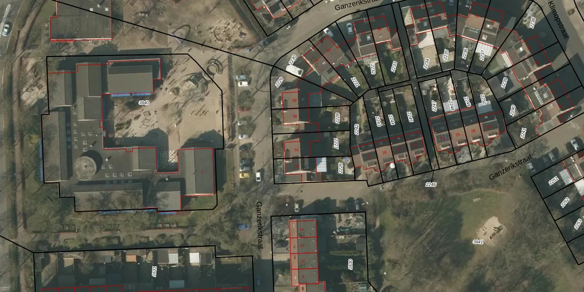 Gebruik de zoekbalk of klik op een perceel voor informatie over de adressen binnen dit perceel.