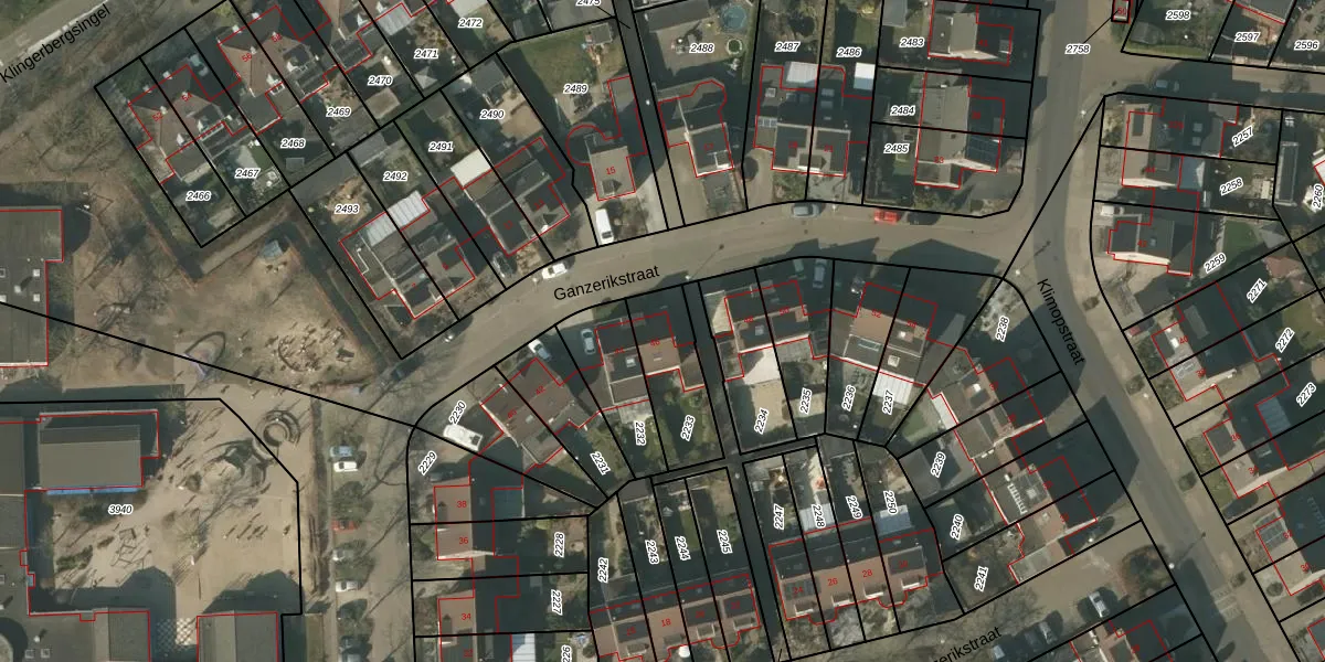 Ganzerikstraat 46 is gelegen op kadastraal perceel VLO00N2233. Deze kadastrale aanduiding is uniek en wordt gebruikt door het Kadaster om eigendomsrechten en andere zakelijke rechten vast te leggen. Het perceel maakt onderdeel uit van de kadastrale gemeente Venlo.
