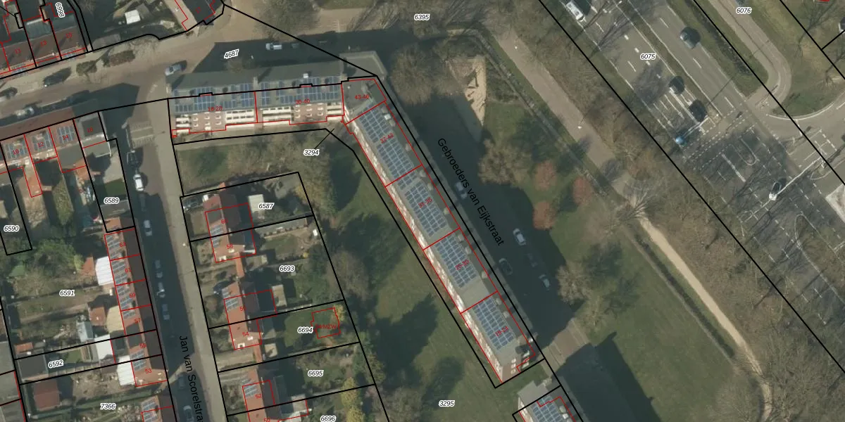 Het perceel waarop Gebroeders van Eijkstraat 32 staat heeft een oppervlakte van 1510 m². Dit is een zeer groot perceel. De perceeloppervlakte wordt geregistreerd door het Kadaster. Gedetailleerde informatie over de maten van dit perceel kunt u vinden in het rapport Kadastrale kaart met maatvoering van Gebroeders van Eijkstraat 32.
