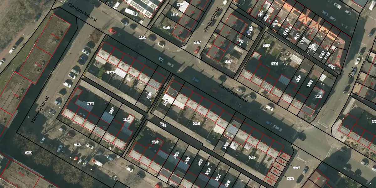 Het perceel waarop Genbroekstraat 16 staat heeft een oppervlakte van 753 m². Dit is een groot perceel. De perceeloppervlakte wordt geregistreerd door het Kadaster. Gedetailleerde informatie over de maten van dit perceel kunt u vinden in het rapport Kadastrale kaart met maatvoering van Genbroekstraat 16.