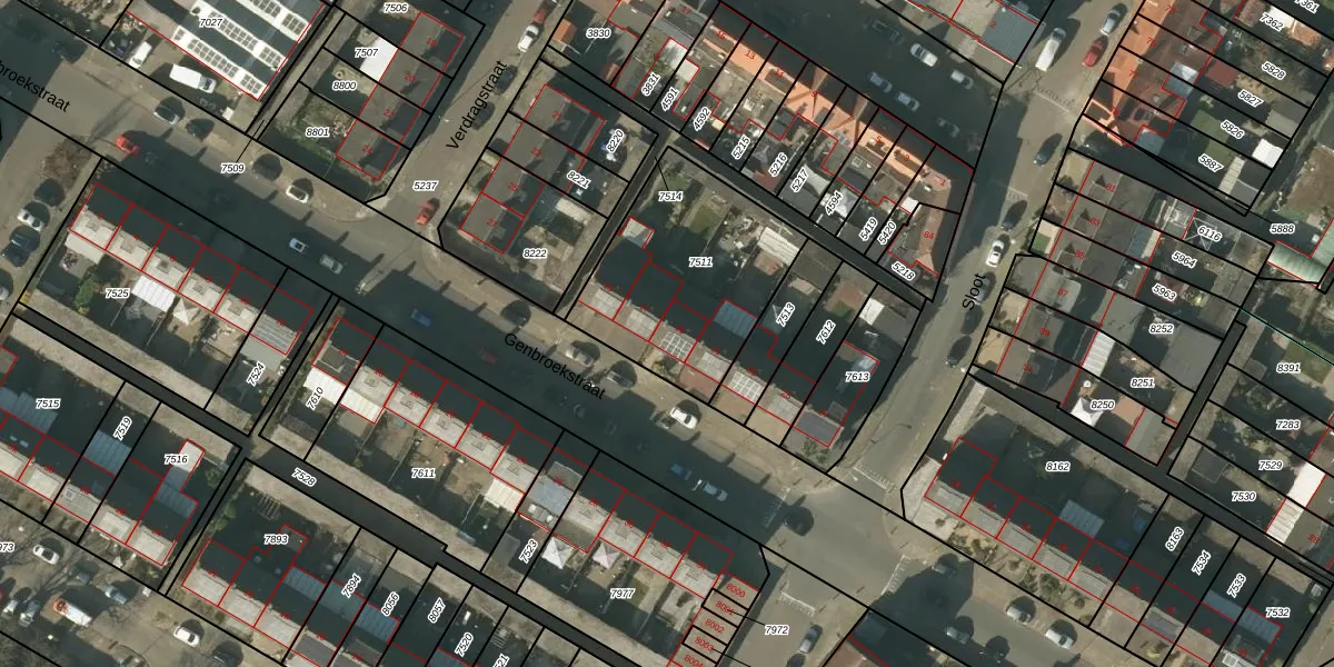 Het perceel waarop Genbroekstraat 19 staat heeft een oppervlakte van 742 m². Dit is een groot perceel. De perceeloppervlakte wordt geregistreerd door het Kadaster. Gedetailleerde informatie over de maten van dit perceel kunt u vinden in het rapport Kadastrale kaart met maatvoering van Genbroekstraat 19.