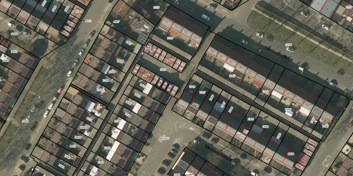 Genbroekstraat 8016 is gelegen op kadastraal perceel VLO00H7965. Deze kadastrale aanduiding is uniek en wordt gebruikt door het Kadaster om eigendomsrechten en andere zakelijke rechten vast te leggen. Het perceel maakt onderdeel uit van de kadastrale gemeente Venlo.