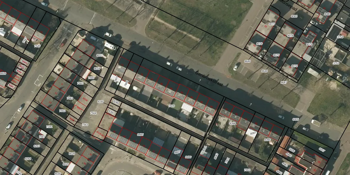 Het perceel waarop Genbroekstraat 82 staat heeft een oppervlakte van 1315 m². Dit is een zeer groot perceel. De perceeloppervlakte wordt geregistreerd door het Kadaster. Gedetailleerde informatie over de maten van dit perceel kunt u vinden in het rapport Kadastrale kaart met maatvoering van Genbroekstraat 82.
