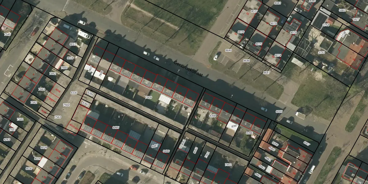 Het perceel waarop Genbroekstraat 88 staat heeft een oppervlakte van 1315 m². Dit is een zeer groot perceel. De perceeloppervlakte wordt geregistreerd door het Kadaster. Gedetailleerde informatie over de maten van dit perceel kunt u vinden in het rapport Kadastrale kaart met maatvoering van Genbroekstraat 88.