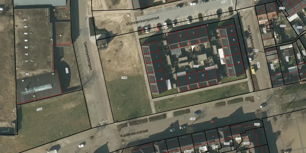 Genooyerbergen 12 is gelegen op kadastraal perceel VLO00A7597. Deze kadastrale aanduiding is uniek en wordt gebruikt door het Kadaster om eigendomsrechten en andere zakelijke rechten vast te leggen. Het perceel maakt onderdeel uit van de kadastrale gemeente Venlo.
