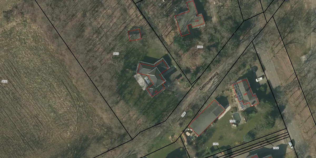 Het perceel waarop Genooyerweg 82 staat heeft een oppervlakte van 5223 m². Dit is een zeer groot perceel. De perceeloppervlakte wordt geregistreerd door het Kadaster. Gedetailleerde informatie over de maten van dit perceel kunt u vinden in het rapport Kadastrale kaart met maatvoering van Genooyerweg 82.