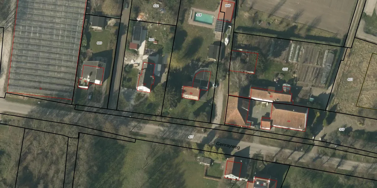 Genrayweg 39 is gelegen op kadastraal perceel VLO00U314. Deze kadastrale aanduiding is uniek en wordt gebruikt door het Kadaster om eigendomsrechten en andere zakelijke rechten vast te leggen. Het perceel maakt onderdeel uit van de kadastrale gemeente Venlo.