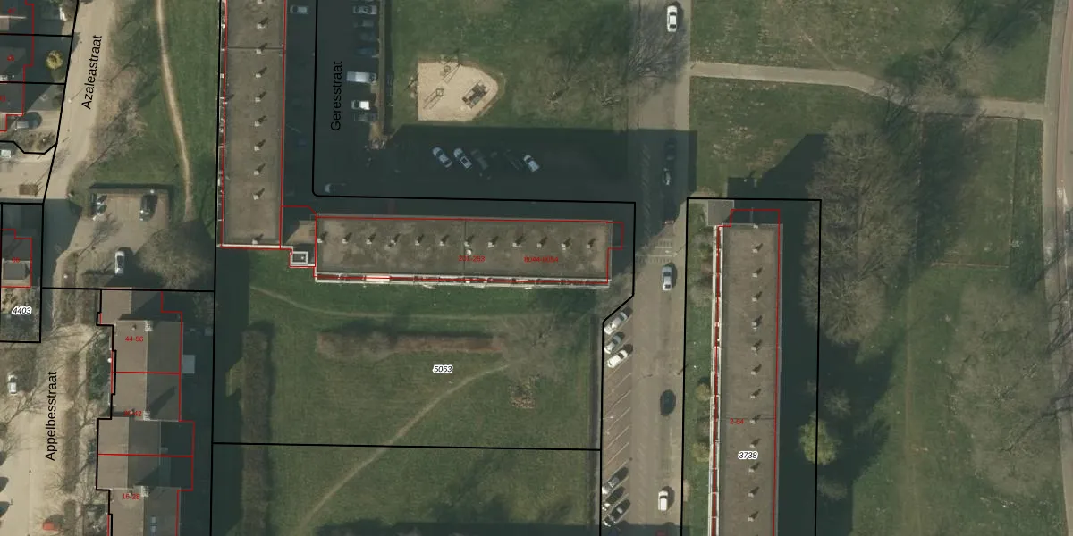 Geresstraat 259 is gelegen op kadastraal perceel VLO00M5063. Deze kadastrale aanduiding is uniek en wordt gebruikt door het Kadaster om eigendomsrechten en andere zakelijke rechten vast te leggen. Het perceel maakt onderdeel uit van de kadastrale gemeente Venlo.