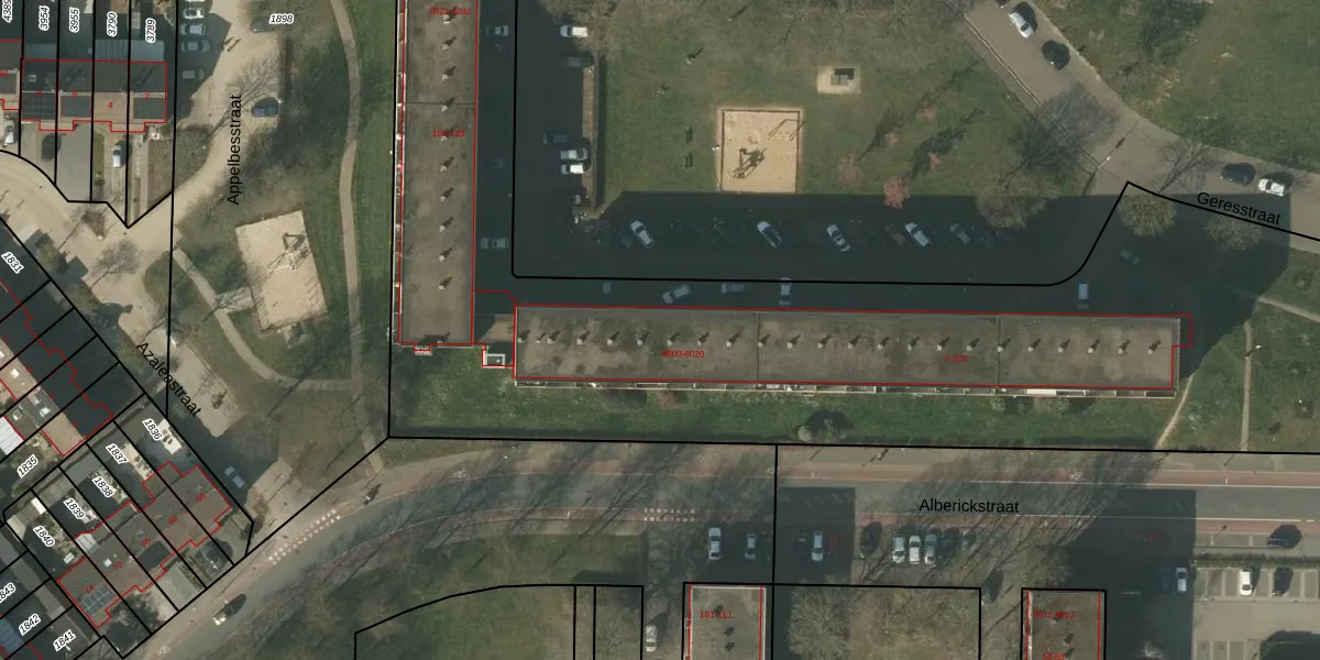 Het perceel waarop Geresstraat 8014 staat heeft een oppervlakte van 9115 m². Dit is een zeer groot perceel. De perceeloppervlakte wordt geregistreerd door het Kadaster. Gedetailleerde informatie over de maten van dit perceel kunt u vinden in het rapport Kadastrale kaart met maatvoering van Geresstraat 8014.