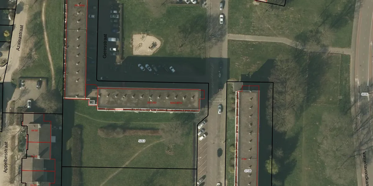 Geresstraat 8045 is gelegen op kadastraal perceel VLO00M5063. Deze kadastrale aanduiding is uniek en wordt gebruikt door het Kadaster om eigendomsrechten en andere zakelijke rechten vast te leggen. Het perceel maakt onderdeel uit van de kadastrale gemeente Venlo.