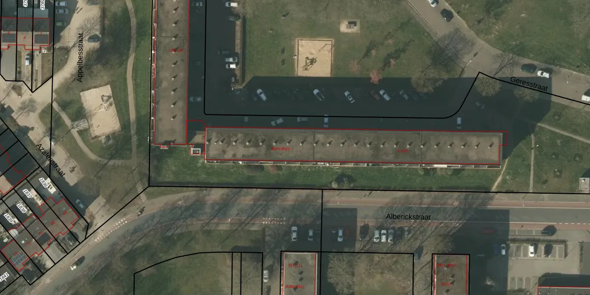 Het perceel waarop Geresstraat 91 staat heeft een oppervlakte van 9115 m². Dit is een zeer groot perceel. De perceeloppervlakte wordt geregistreerd door het Kadaster. Gedetailleerde informatie over de maten van dit perceel kunt u vinden in het rapport Kadastrale kaart met maatvoering van Geresstraat 91.