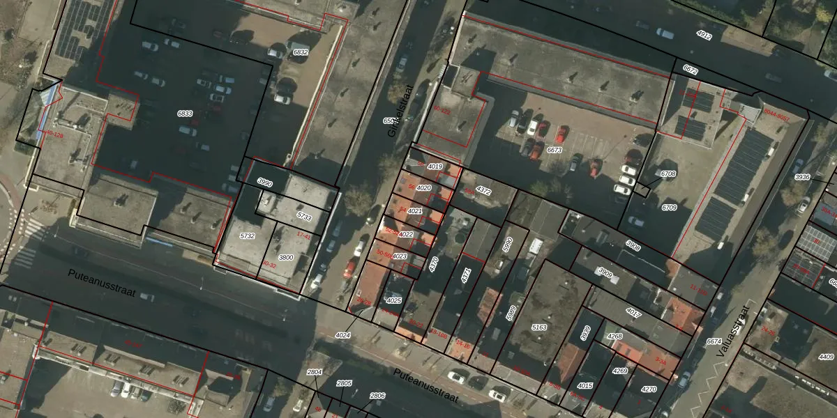 Ginkelstraat 54-B is gelegen op kadastraal perceel VLO00I4021. Deze kadastrale aanduiding is uniek en wordt gebruikt door het Kadaster om eigendomsrechten en andere zakelijke rechten vast te leggen. Het perceel maakt onderdeel uit van de kadastrale gemeente Venlo.