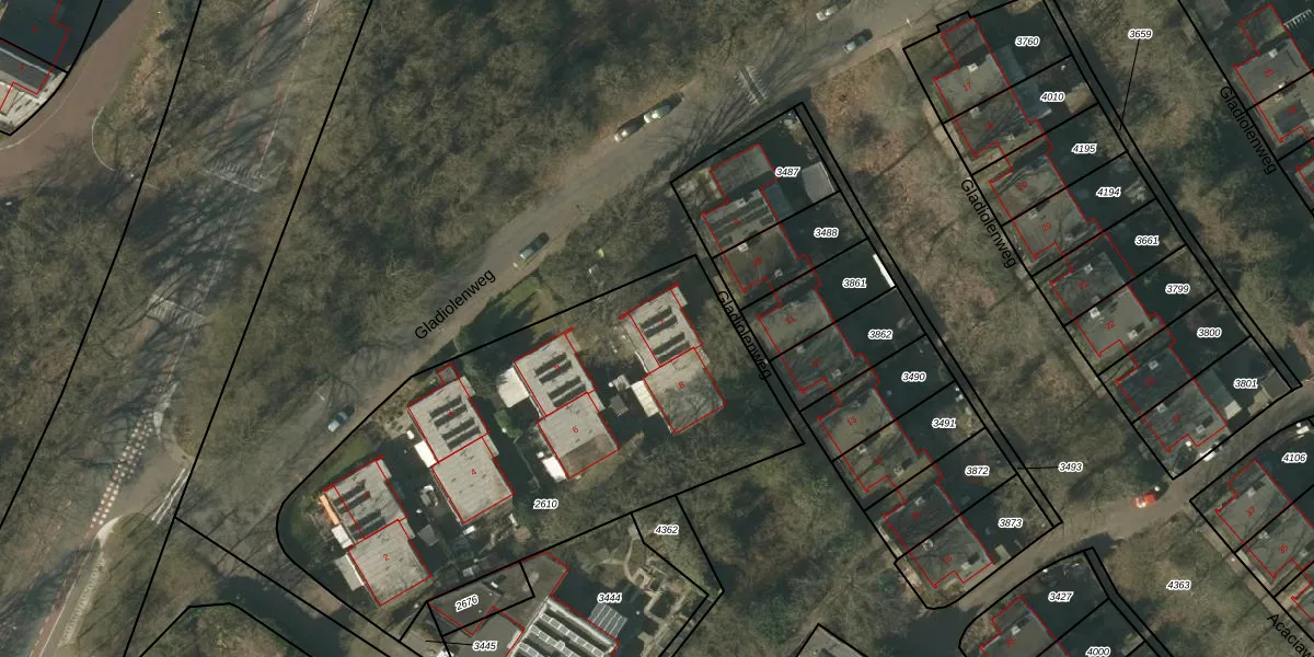 Gladiolenweg 7 is gelegen op kadastraal perceel VLO00F2610. Deze kadastrale aanduiding is uniek en wordt gebruikt door het Kadaster om eigendomsrechten en andere zakelijke rechten vast te leggen. Het perceel maakt onderdeel uit van de kadastrale gemeente Venlo.