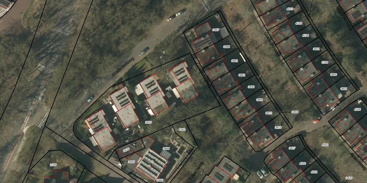 Gladiolenweg 8 is gelegen op kadastraal perceel VLO00F2610. Deze kadastrale aanduiding is uniek en wordt gebruikt door het Kadaster om eigendomsrechten en andere zakelijke rechten vast te leggen. Het perceel maakt onderdeel uit van de kadastrale gemeente Venlo.