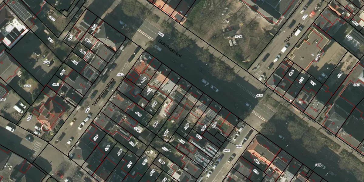 Het perceel waarop Goltziusstraat 12 staat heeft een oppervlakte van 257 m². Dit is een middelgroot perceel. De perceeloppervlakte wordt geregistreerd door het Kadaster. Gedetailleerde informatie over de maten van dit perceel kunt u vinden in het rapport Kadastrale kaart met maatvoering van Goltziusstraat 12.
