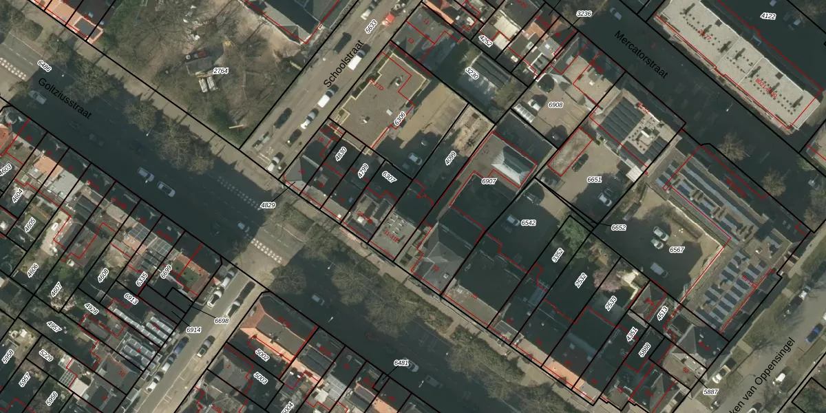 Het perceel waarop Goltziusstraat 31-E staat heeft een oppervlakte van 330 m². Dit is een groot perceel. De perceeloppervlakte wordt geregistreerd door het Kadaster. Gedetailleerde informatie over de maten van dit perceel kunt u vinden in het rapport Kadastrale kaart met maatvoering van Goltziusstraat 31-E.