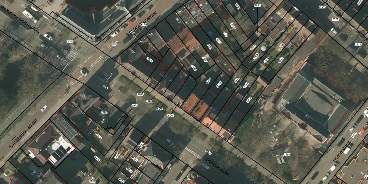 Goltziusstraat 9-A is gelegen op kadastraal perceel VLO00I3825. Deze kadastrale aanduiding is uniek en wordt gebruikt door het Kadaster om eigendomsrechten en andere zakelijke rechten vast te leggen. Het perceel maakt onderdeel uit van de kadastrale gemeente Venlo.