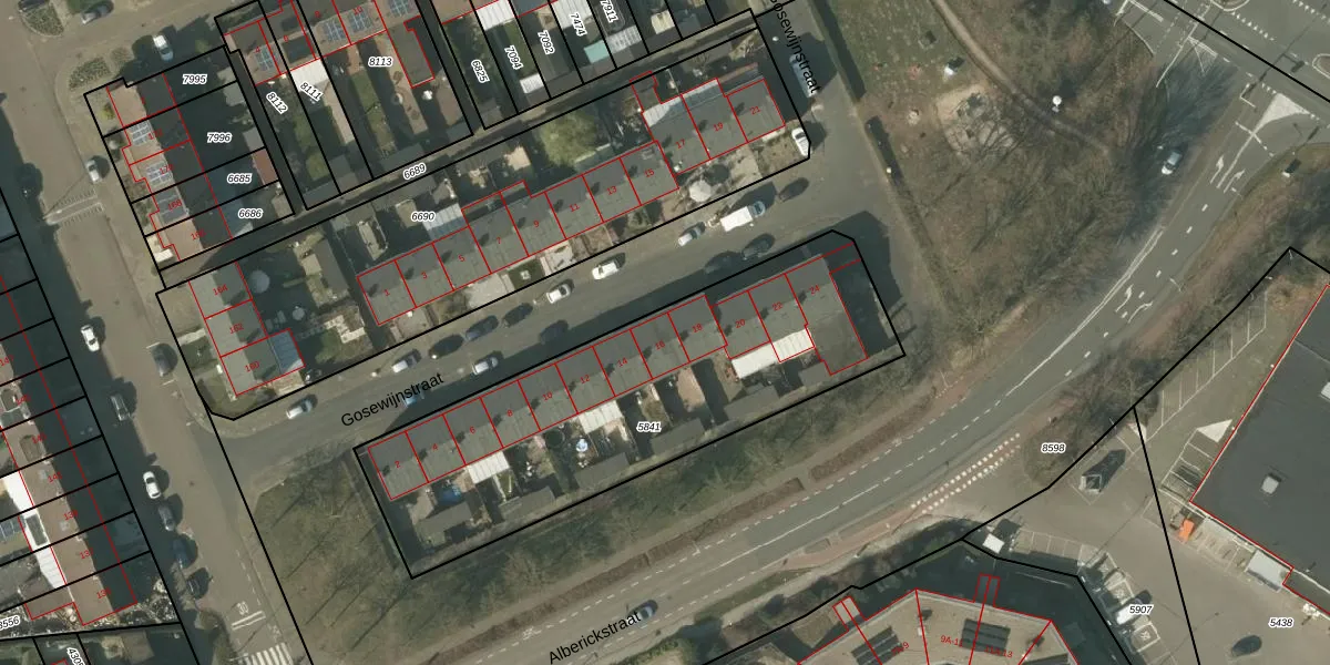 Gosewijnstraat 16 is gelegen op kadastraal perceel VLO00M5841. Deze kadastrale aanduiding is uniek en wordt gebruikt door het Kadaster om eigendomsrechten en andere zakelijke rechten vast te leggen. Het perceel maakt onderdeel uit van de kadastrale gemeente Venlo.