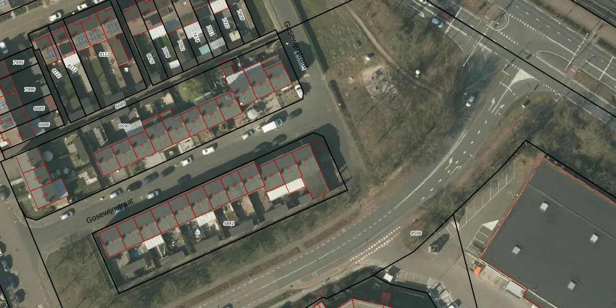 Het perceel waarop Gosewijnstraat 24 staat heeft een oppervlakte van 1750 m². Dit is een zeer groot perceel. De perceeloppervlakte wordt geregistreerd door het Kadaster. Gedetailleerde informatie over de maten van dit perceel kunt u vinden in het rapport Kadastrale kaart met maatvoering van Gosewijnstraat 24.