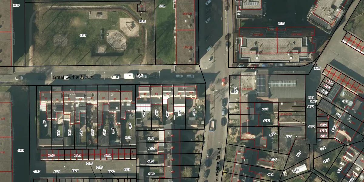 Het perceel waarop Graaf Gerhardstraat 54 staat heeft een oppervlakte van 155 m². Dit is een middelgroot perceel. De perceeloppervlakte wordt geregistreerd door het Kadaster. Gedetailleerde informatie over de maten van dit perceel kunt u vinden in het rapport Kadastrale kaart met maatvoering van Graaf Gerhardstraat 54.