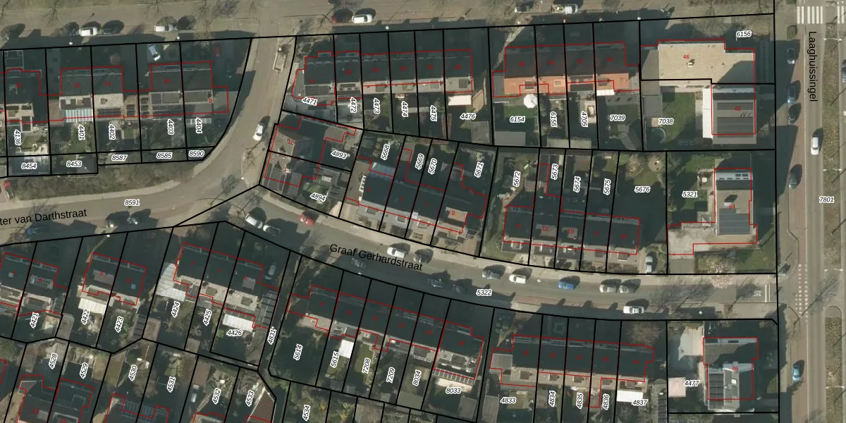 Het perceel waarop Graaf Gerhardstraat 7 staat heeft een oppervlakte van 160 m². Dit is een middelgroot perceel. De perceeloppervlakte wordt geregistreerd door het Kadaster. Gedetailleerde informatie over de maten van dit perceel kunt u vinden in het rapport Kadastrale kaart met maatvoering van Graaf Gerhardstraat 7.