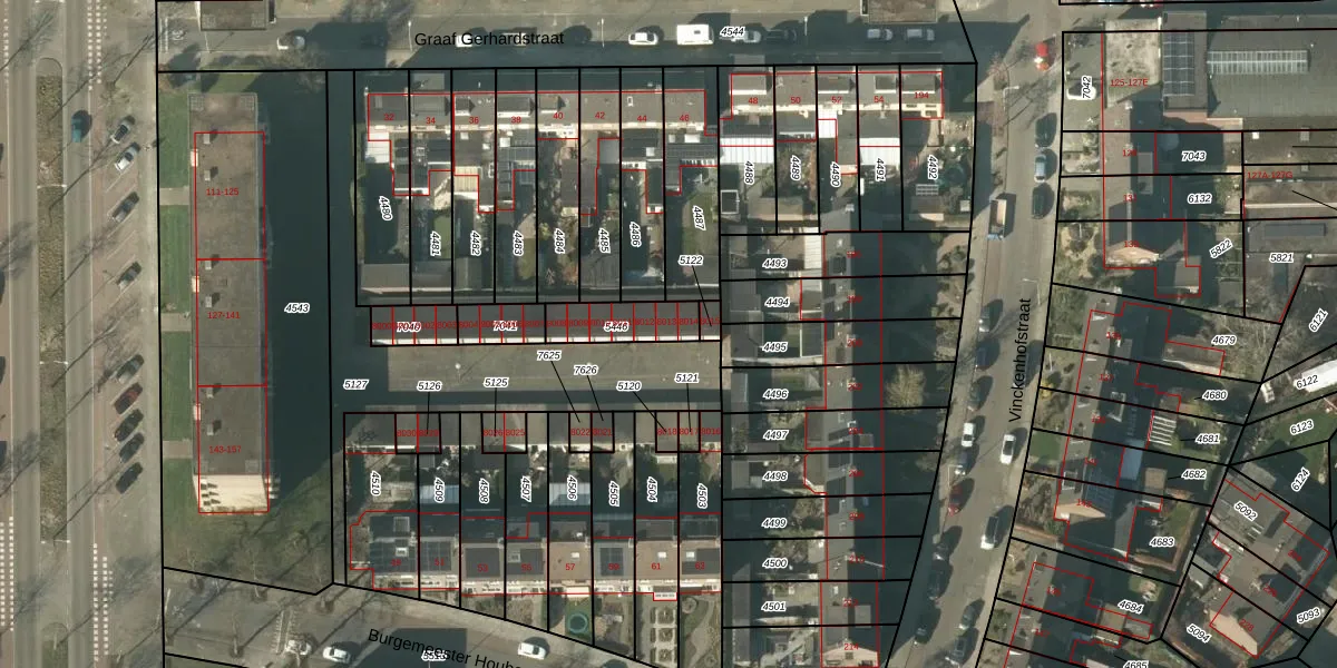Graaf Gerhardstraat 8013 is gelegen op kadastraal perceel VLO00D5446. Deze kadastrale aanduiding is uniek en wordt gebruikt door het Kadaster om eigendomsrechten en andere zakelijke rechten vast te leggen. Het perceel maakt onderdeel uit van de kadastrale gemeente Venlo.