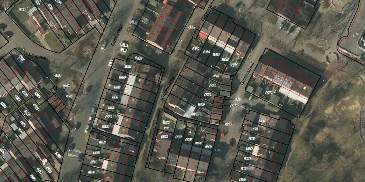 Grimmstraat 29 is gelegen op kadastraal perceel VLO00N1340. Deze kadastrale aanduiding is uniek en wordt gebruikt door het Kadaster om eigendomsrechten en andere zakelijke rechten vast te leggen. Het perceel maakt onderdeel uit van de kadastrale gemeente Venlo.