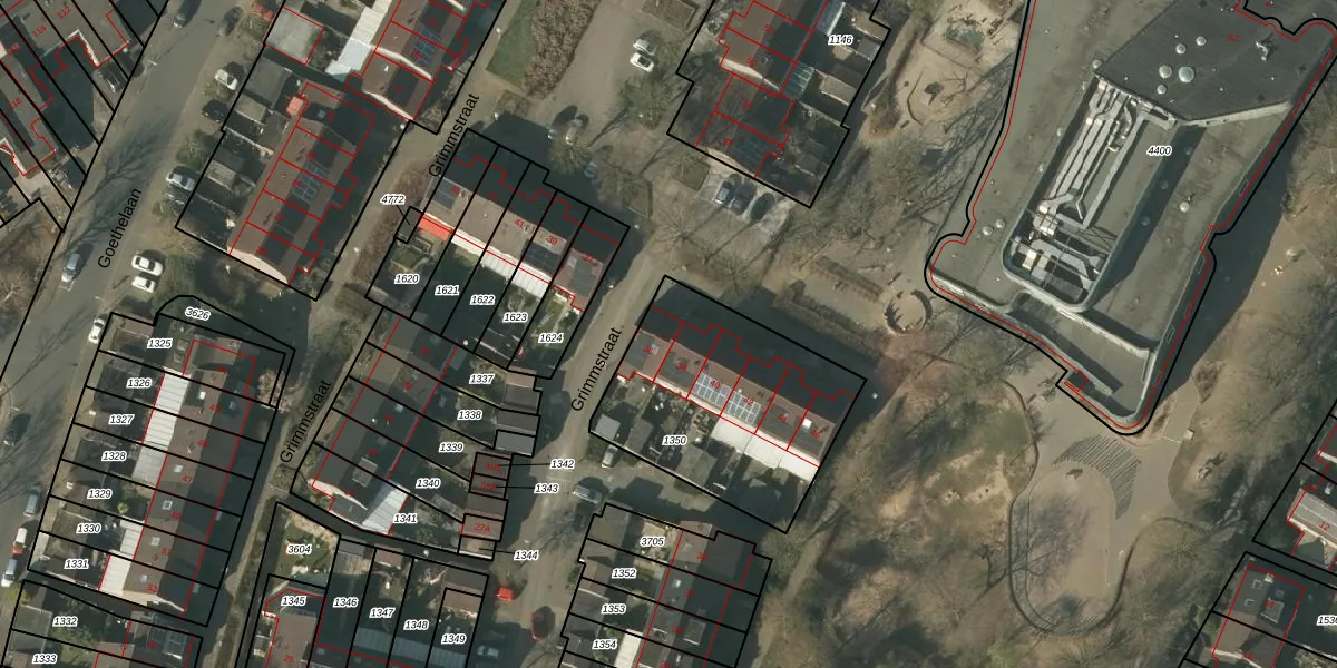 Het perceel waarop Grimmstraat 36 staat heeft een oppervlakte van 876 m². Dit is een groot perceel. De perceeloppervlakte wordt geregistreerd door het Kadaster. Gedetailleerde informatie over de maten van dit perceel kunt u vinden in het rapport Kadastrale kaart met maatvoering van Grimmstraat 36.