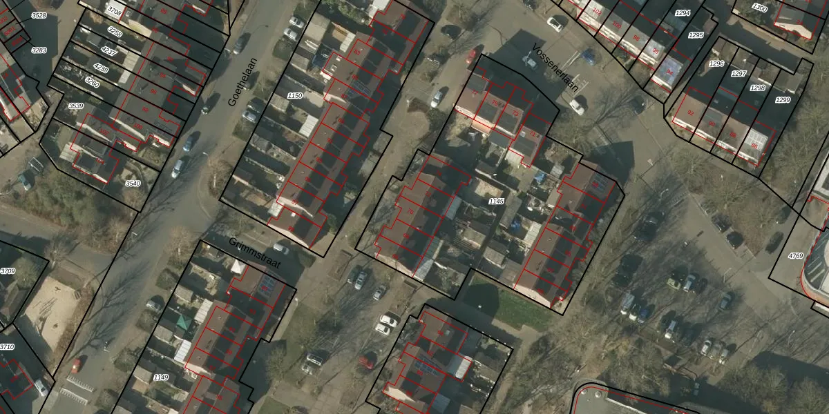 Het perceel waarop Grimmstraat 70 staat heeft een oppervlakte van 2215 m². Dit is een zeer groot perceel. De perceeloppervlakte wordt geregistreerd door het Kadaster. Gedetailleerde informatie over de maten van dit perceel kunt u vinden in het rapport Kadastrale kaart met maatvoering van Grimmstraat 70.
