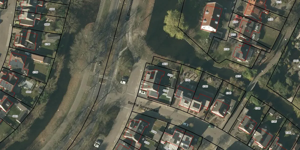 Gebruik de zoekbalk of klik op een perceel voor informatie over de adressen binnen dit perceel.