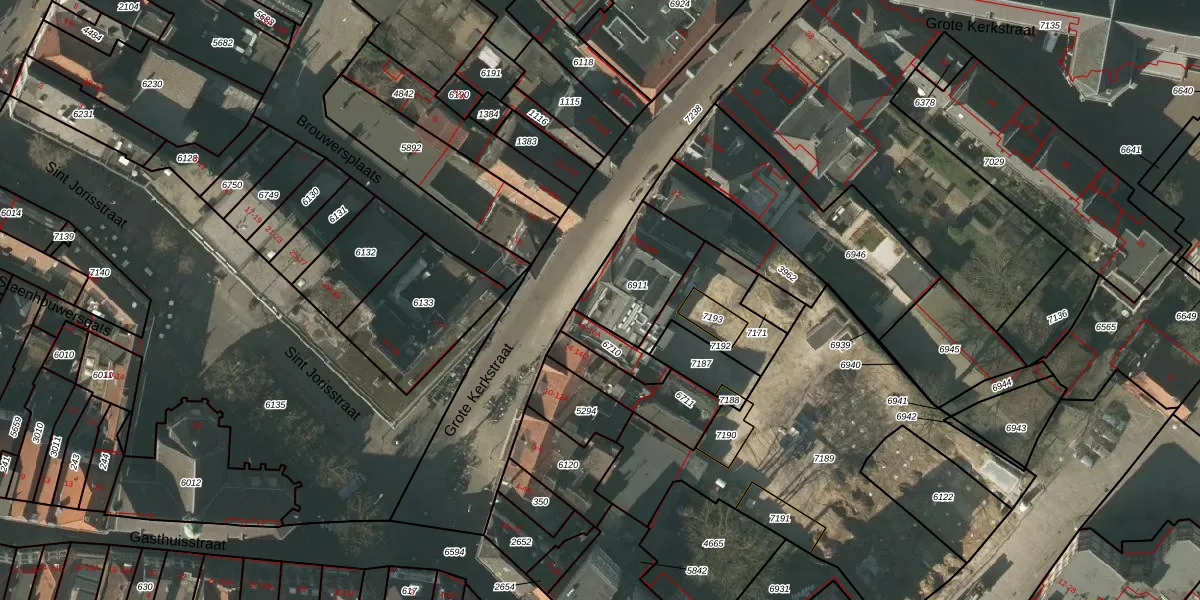 Grote Kerkstraat 18-B is gelegen op kadastraal perceel VLO00I6911. Deze kadastrale aanduiding is uniek en wordt gebruikt door het Kadaster om eigendomsrechten en andere zakelijke rechten vast te leggen. Het perceel maakt onderdeel uit van de kadastrale gemeente Venlo.