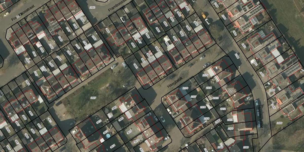 Gebruik de zoekbalk of klik op een perceel voor informatie over de adressen binnen dit perceel.