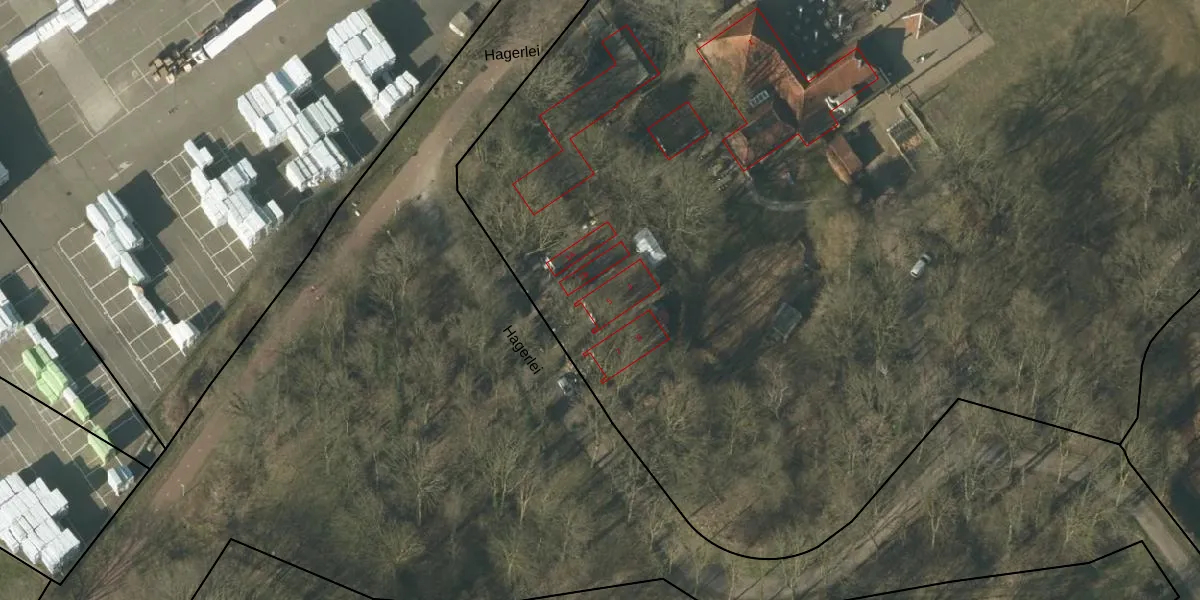 Het perceel waarop Hagerlei 5 staat heeft een oppervlakte van 1,6 ha. Dit is een zeer groot perceel. De perceeloppervlakte wordt geregistreerd door het Kadaster. Gedetailleerde informatie over de maten van dit perceel kunt u vinden in het rapport Kadastrale kaart met maatvoering van Hagerlei 5.
