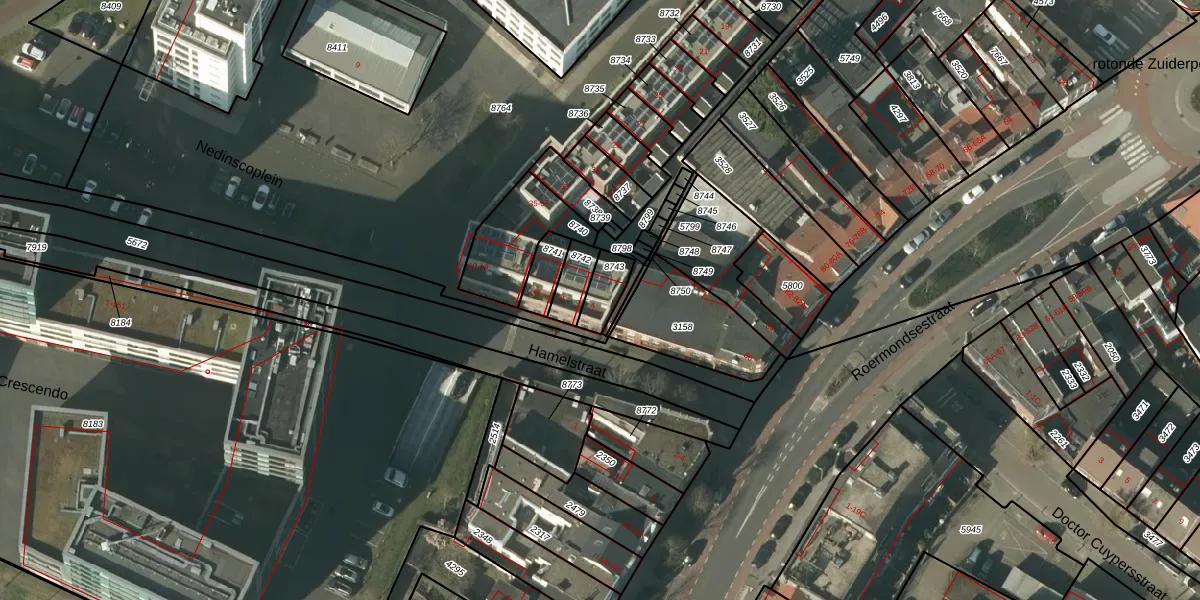 Hamelstraat 4 is gelegen op kadastraal perceel VLO00H8743. Deze kadastrale aanduiding is uniek en wordt gebruikt door het Kadaster om eigendomsrechten en andere zakelijke rechten vast te leggen. Het perceel maakt onderdeel uit van de kadastrale gemeente Venlo.