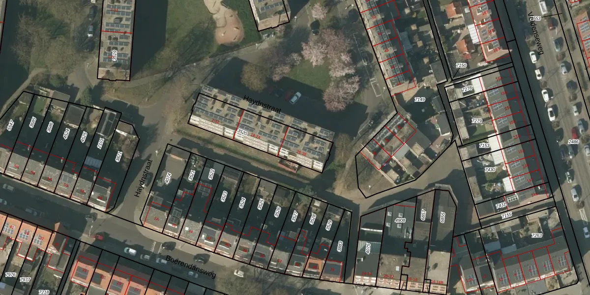 Het perceel waarop Haydnstraat 28 staat heeft een oppervlakte van 535 m². Dit is een groot perceel. De perceeloppervlakte wordt geregistreerd door het Kadaster. Gedetailleerde informatie over de maten van dit perceel kunt u vinden in het rapport Kadastrale kaart met maatvoering van Haydnstraat 28.