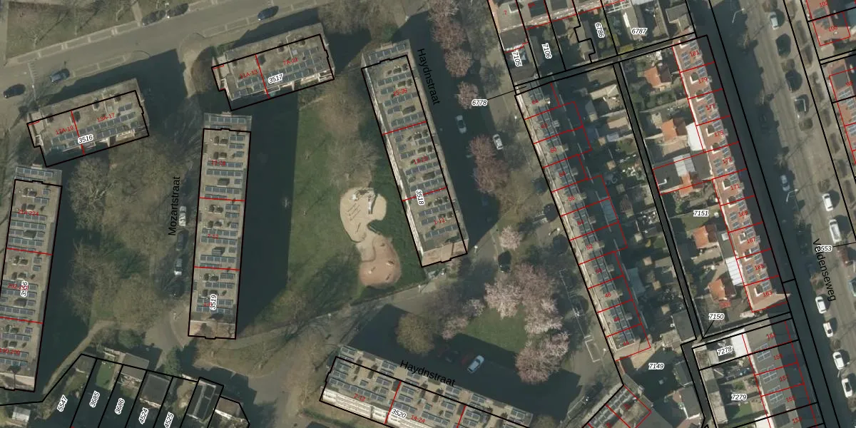 Het perceel waarop Haydnstraat 5 staat heeft een oppervlakte van 535 m². Dit is een groot perceel. De perceeloppervlakte wordt geregistreerd door het Kadaster. Gedetailleerde informatie over de maten van dit perceel kunt u vinden in het rapport Kadastrale kaart met maatvoering van Haydnstraat 5.