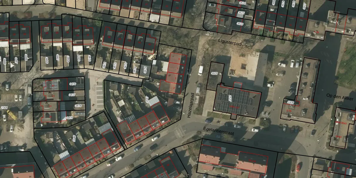 Het perceel waarop Hazelaarpad 3 staat heeft een oppervlakte van 1630 m². Dit is een zeer groot perceel. De perceeloppervlakte wordt geregistreerd door het Kadaster. Gedetailleerde informatie over de maten van dit perceel kunt u vinden in het rapport Kadastrale kaart met maatvoering van Hazelaarpad 3.