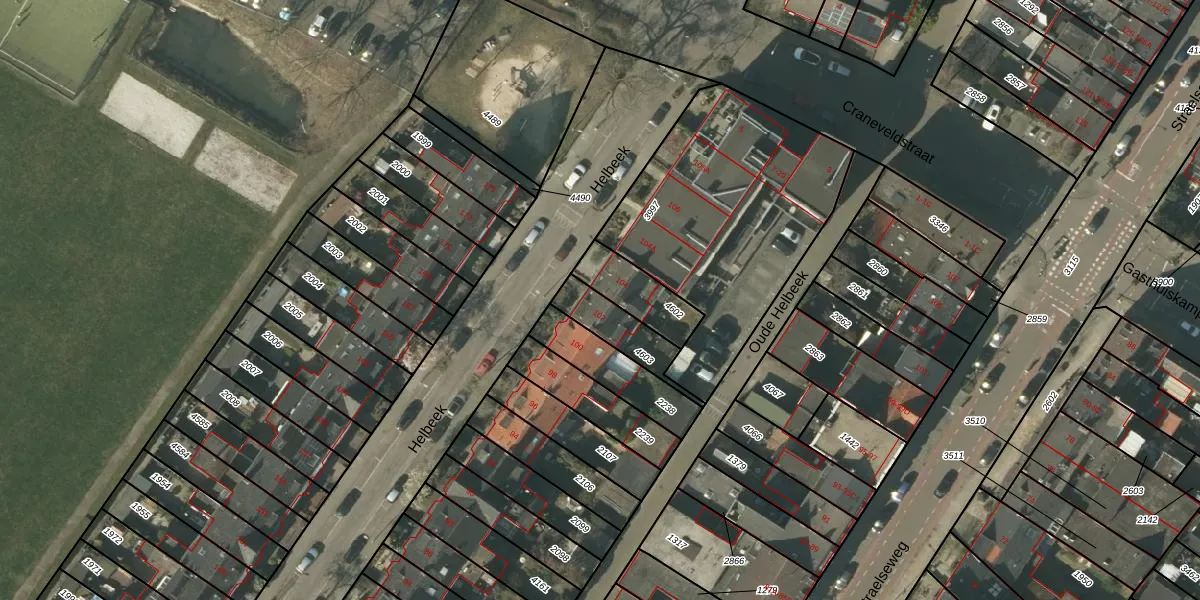 Helbeek 102 is gelegen op kadastraal perceel VLO00A4603. Deze kadastrale aanduiding is uniek en wordt gebruikt door het Kadaster om eigendomsrechten en andere zakelijke rechten vast te leggen. Het perceel maakt onderdeel uit van de kadastrale gemeente Venlo.