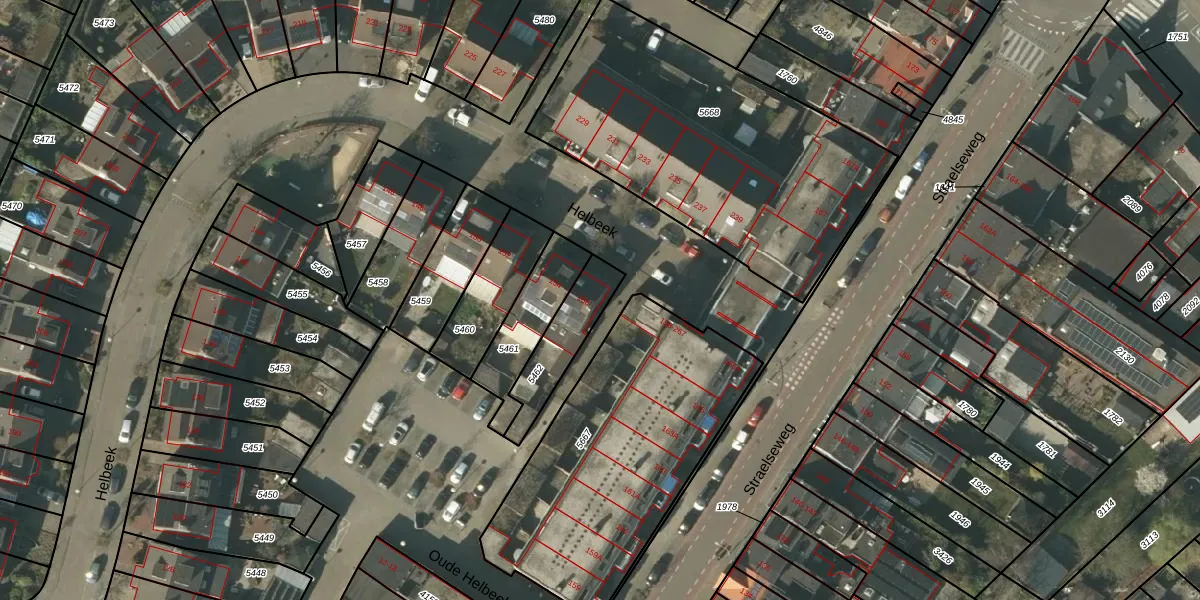 Gebruik de zoekbalk of klik op een perceel voor informatie over de adressen binnen dit perceel.