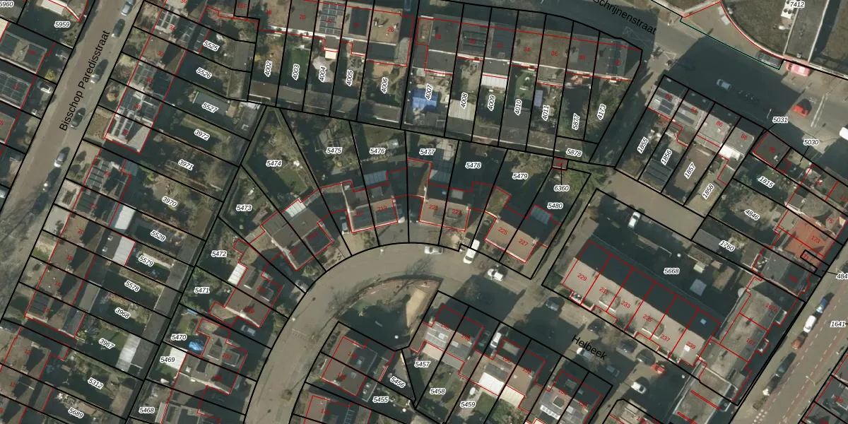 Helbeek 221 is gelegen op kadastraal perceel VLO00A5477. Deze kadastrale aanduiding is uniek en wordt gebruikt door het Kadaster om eigendomsrechten en andere zakelijke rechten vast te leggen. Het perceel maakt onderdeel uit van de kadastrale gemeente Venlo.