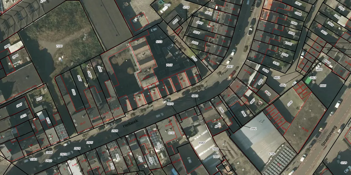 Helbeek 43 is gelegen op kadastraal perceel VLO00A7015. Deze kadastrale aanduiding is uniek en wordt gebruikt door het Kadaster om eigendomsrechten en andere zakelijke rechten vast te leggen. Het perceel maakt onderdeel uit van de kadastrale gemeente Venlo.