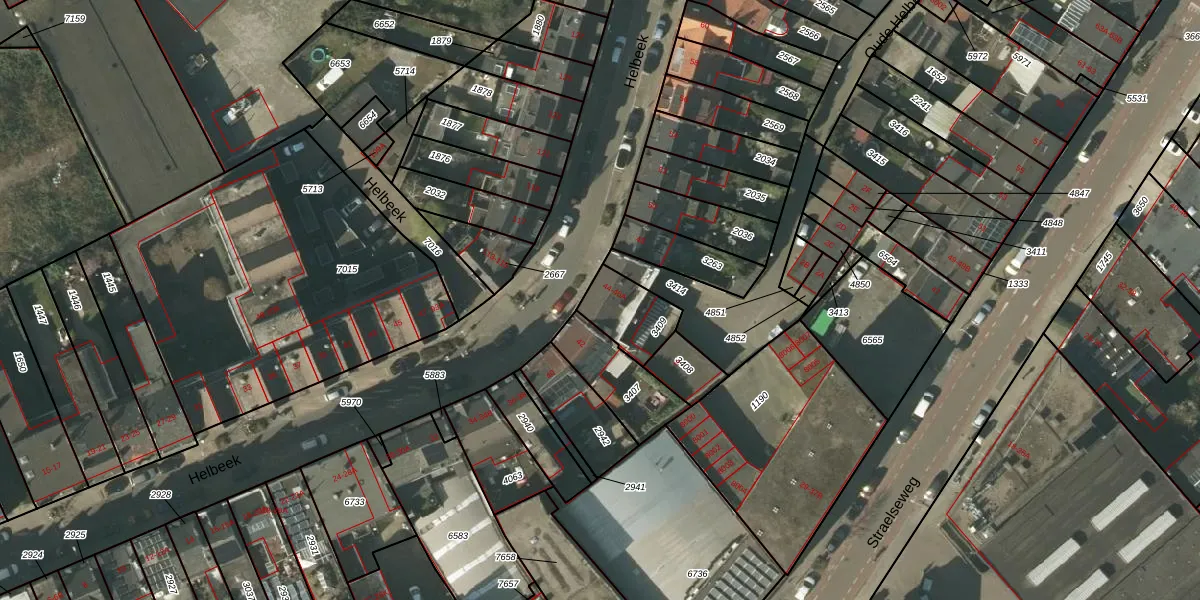 Het perceel waarop Helbeek 44 staat heeft een oppervlakte van 153 m². Dit is een middelgroot perceel. De perceeloppervlakte wordt geregistreerd door het Kadaster. Gedetailleerde informatie over de maten van dit perceel kunt u vinden in het rapport Kadastrale kaart met maatvoering van Helbeek 44.