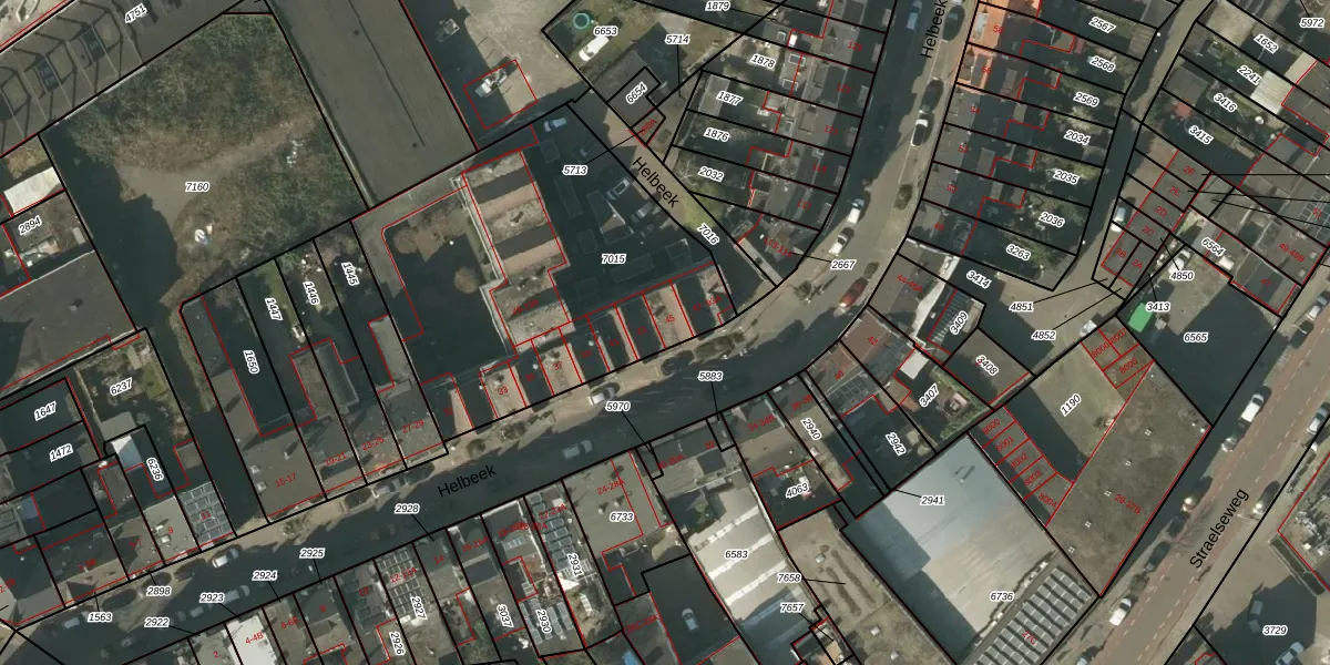 Helbeek 45 is gelegen op kadastraal perceel VLO00A7015. Deze kadastrale aanduiding is uniek en wordt gebruikt door het Kadaster om eigendomsrechten en andere zakelijke rechten vast te leggen. Het perceel maakt onderdeel uit van de kadastrale gemeente Venlo.